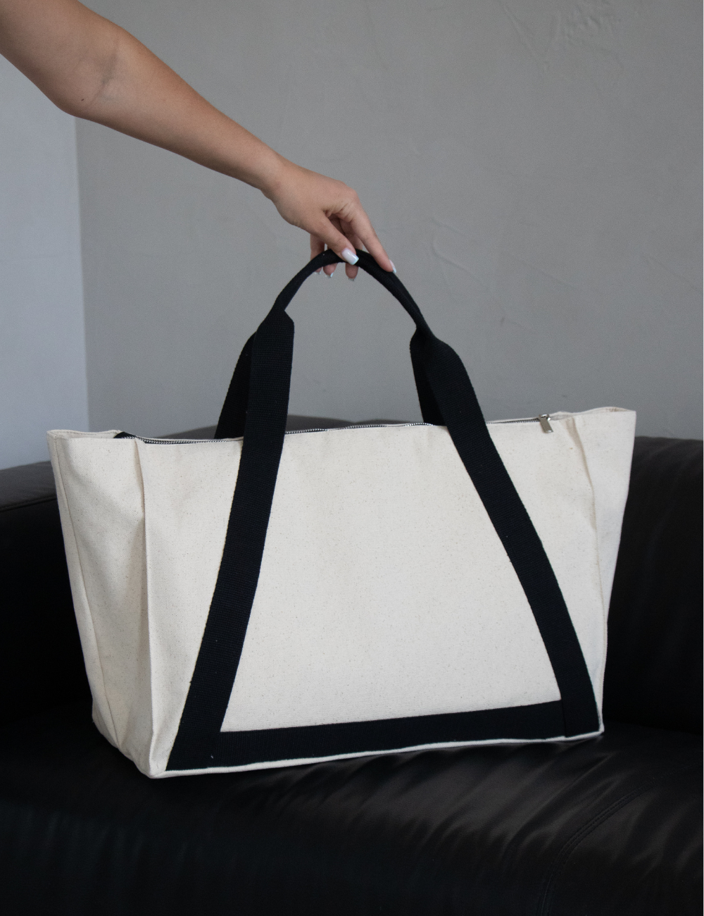 Size: 47×33 cm. Available in two colorways: white with black handles and black with white handles. Perfect for applying your company branding.
