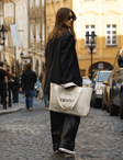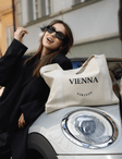Lightweight yet durable shopper bag with interior lining and Vienna print. Size: 45×32 cm. Perfect as a souvenir or everyday bag.