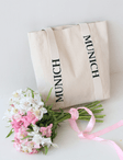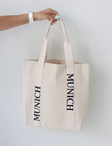 Textile tote bag made from durable fabric. Strong stitched handles along the entire length, inner pocket. Spacious main compartment for everyday essentials. Size: 35×30 cm. Munich-themed print on the bag, with the option to add any custom design on the handles.