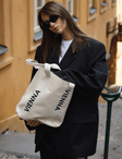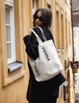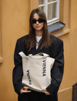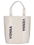 Textile tote bag made from durable fabric. Strong stitched handles along the entire length, inner pocket. Spacious main compartment for everyday essentials. Size: 35×30 cm. Vienna-themed print on the bag, with the option to add any custom design on the handles.
